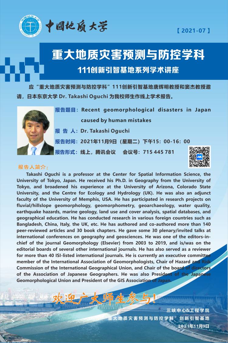 重大地质灾害预测与防控学科---111创新引智基地系列学术讲座(7)