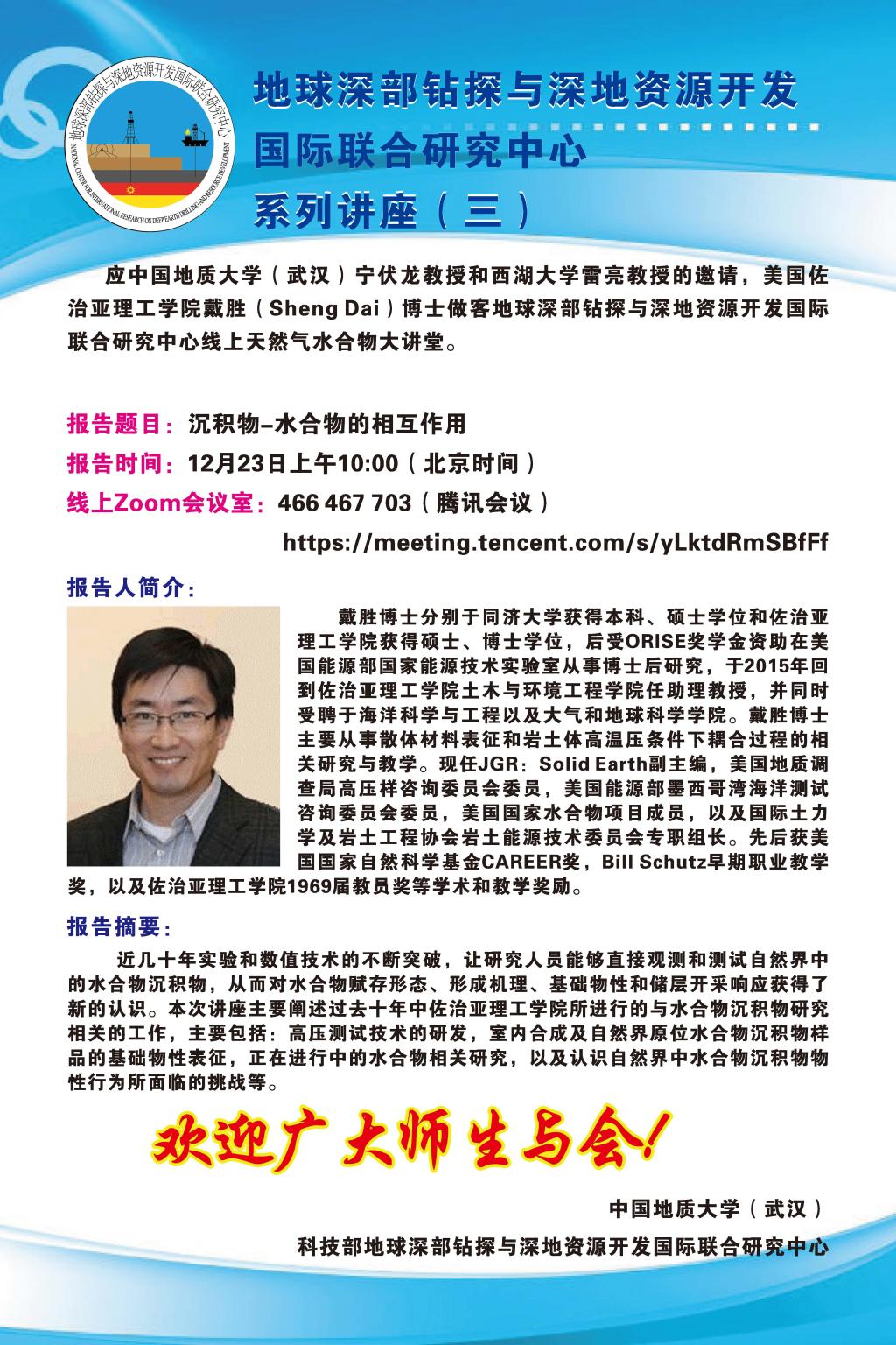 2020年地球深部钻探与深地资源开发国际联合研究中心系列讲座(3)沉积物—水合物的相互作用