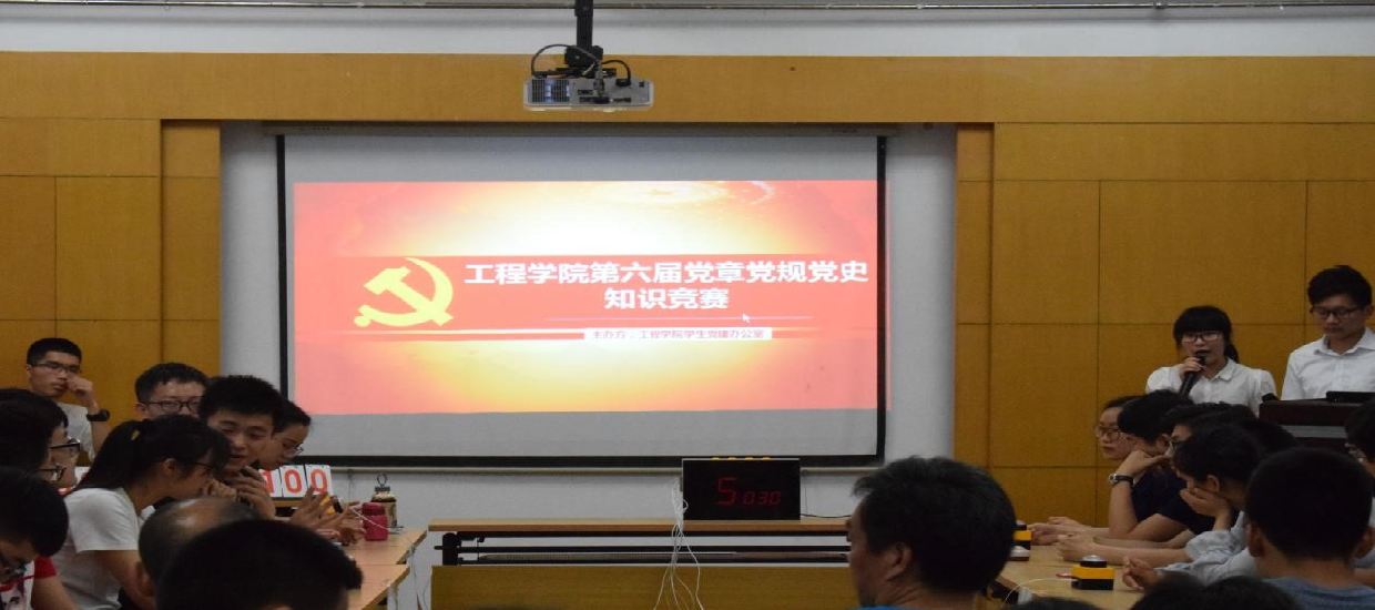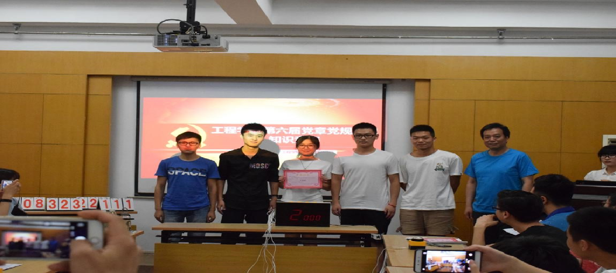 (通讯员:文新)2017年5月14日晚7点,十大买球官方网站第六届党章党规党史知识竞赛决赛在工程楼315报告厅举行,院党委书记陈飞,院党委副书记江广长,辅导员文新、王俊以及6支决赛队伍参加了比赛。