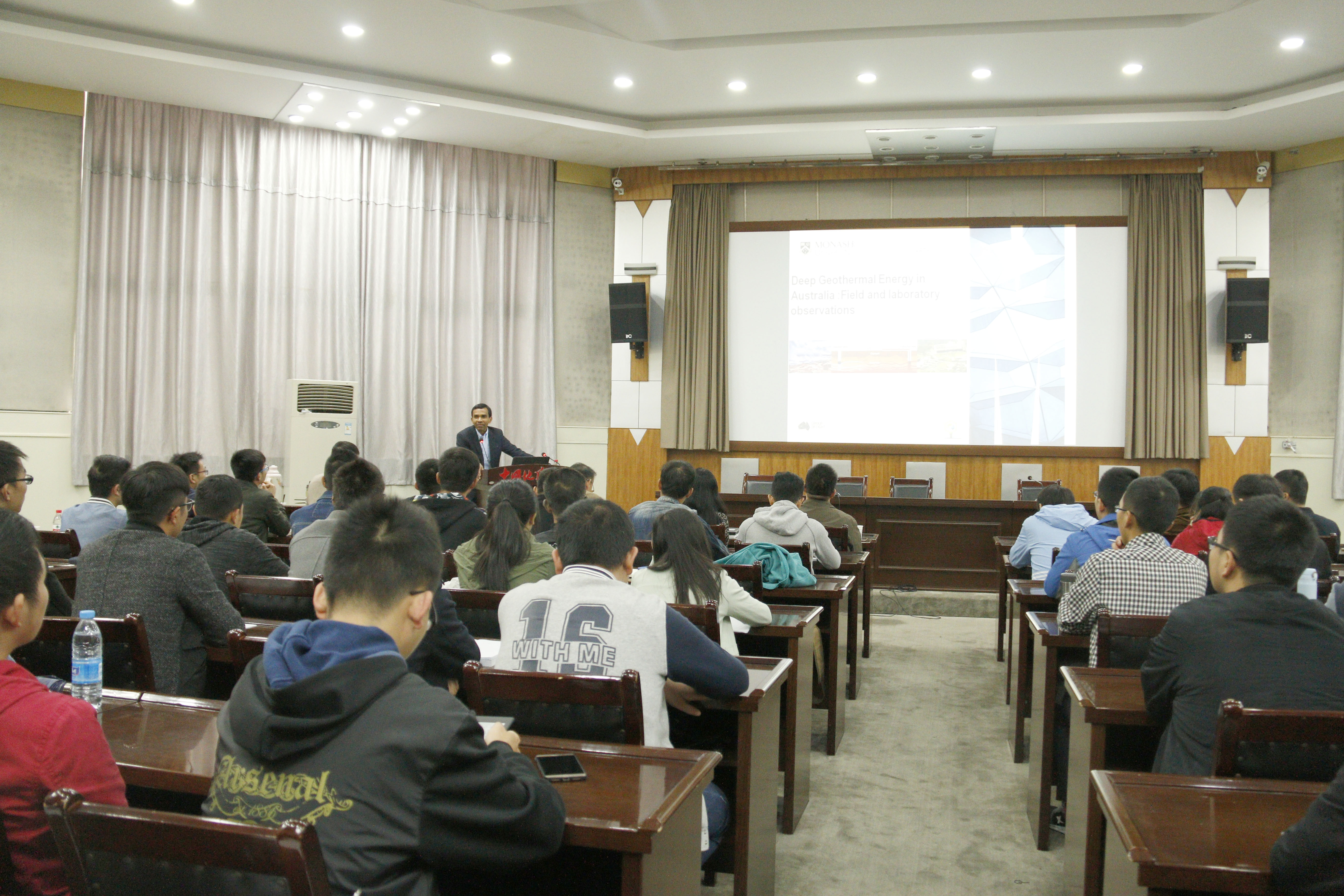 10月17日下午,澳大利亚莫纳什大学深部地球能源实验室主任Ranjith Pathegama Gamage教授来校作了主题为“Enhanced Geothermal Energy prospects in Australia: Field and laboratory observations”的学术报告。十大买球官方网站院长焦玉勇教授主持了报告会,学院200余名师生聆听了报告。