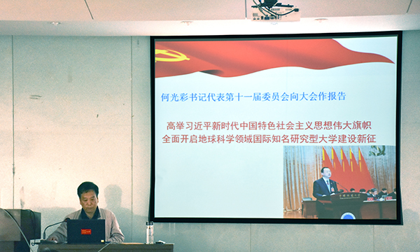 陈飞指出,学校未来发展的宏伟蓝图已经绘就,十大买球官方网站“双一流”建设已经启动,全院教职工都要以习近平新时代中国特色社会主义思想为指导,把全面贯彻落实“十九大”精神和学校第十二次党代会精神放在首要位置,切实把思想和认识统一到学校第十二次党代会精神上来,切实把智慧和力量凝聚到实现第十二次党代会提出的奋斗目标任务上来,在学校新一届党委的坚强领导下,以全面加强党的建设为统领,全面落实立德树人根本任务,进一步解放思想、深化综合改革、追求学术卓越,进一步提升教育教学、科学研究、社会服务水平,努力开创各项工作新局面,为把学校建设成为地球科学领域国际知名研究型大学生作出新的更大的贡献。