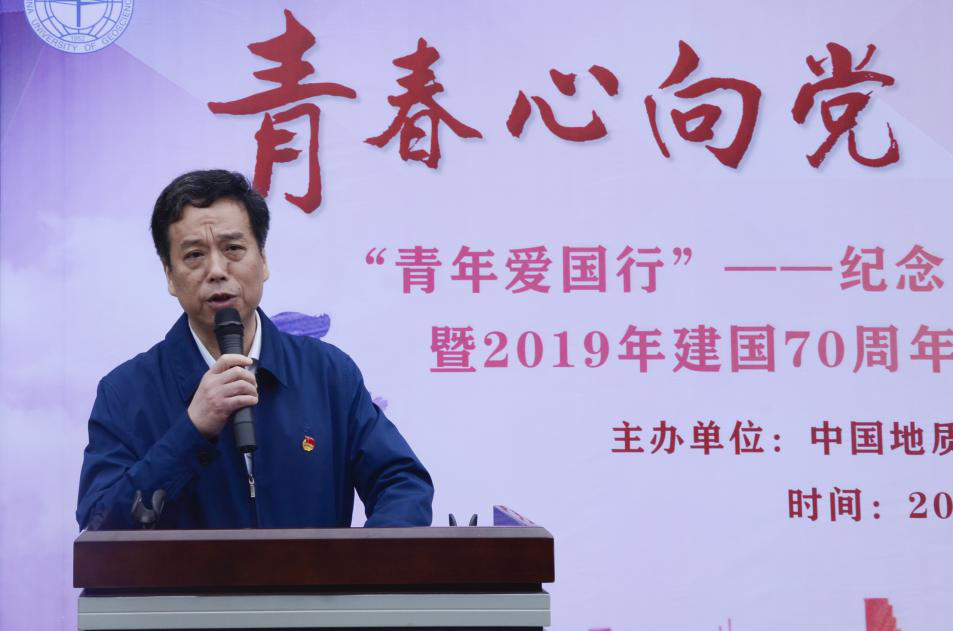 (通讯员:文新)4月27日上午,“青年爱国行”——十大买球官方网站纪念五四运动100周年主题团日暨2019年建国70周年系列主题教育活动启动仪式在地勘楼前广场举行。十大买球官方网站党委书记陈飞、校党委学工部副部长朱继、校团委办公室主任黄蕾、十大买球官方网站全体辅导员、十大买球官方网站40个团支部近400人参加了活动。