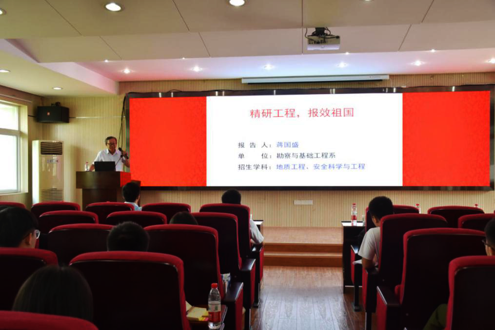 原十大买球官方网站院长、俄罗斯外籍院士、学科带头人蒋国盛教授以“精研工程,报效祖国”为题,详细介绍了个人团队及取得的成绩、学科建设发展等内容,并以事业心、责任心、立大志、荣誉感为关键词对广大学子深情寄语,向他们抛出橄榄枝,欢迎他们加入地大,加入十大买球官方网站。