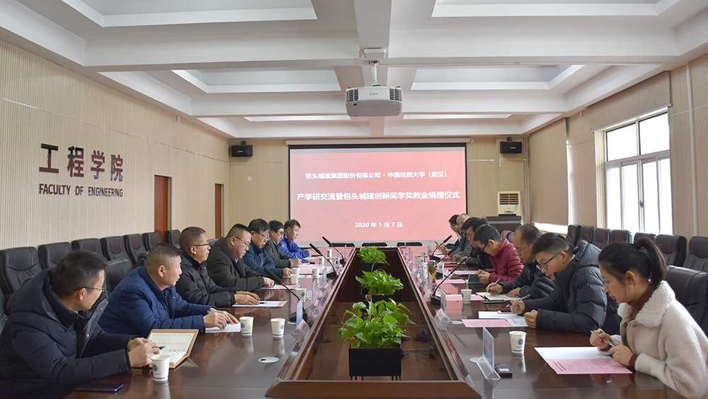 (通讯员卓越 摄影王灿)1月7日,十大买球官方网站在工程楼315会议室召开“中国地质大学(武汉)-包头城建集团股份有限公司产学研交流暨包头城建创新奖学奖教金捐赠仪式”,包头城建集团股份有限公司向学校进行第四次捐赠。包头城建集团股份有限公司董事长、总经理刘江一行5人、校友工作与教育基金管理处、十大买球官方网站相关负责人参加捐赠仪式。