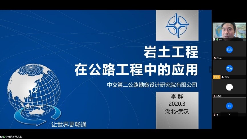 3月17日,中交第二公路勘察设计研究院西藏分院副院长李群教授级高级工程师开讲。本次采用线上讲课的形式。