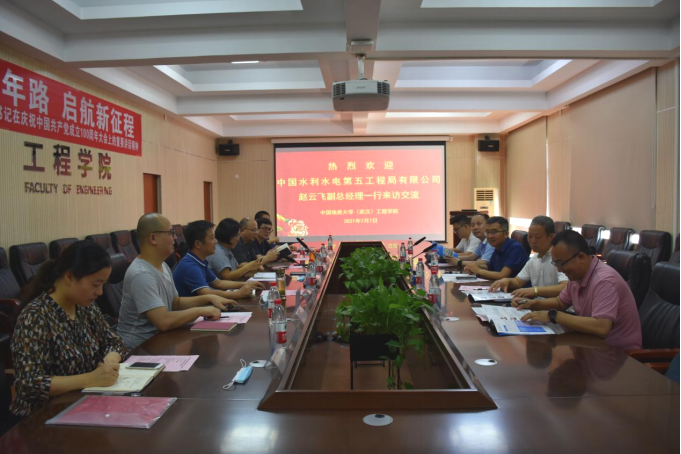 (通讯员:黄静 摄影:王灿)7月7日下午,中国地质大学(武汉)十大买球官方网站与中国水利水电第五工程局有限公司在工程楼315会议室举行联合共建产学研基地合作会谈,并签订合作协议。十大买球官方网站党委副书记江广长主持活动。