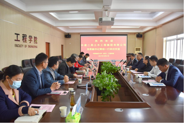 王亮清副院长对中建二局土木工程集团有限公司党委副书记黄琼一行的来访表示热烈欢迎。在一同观看中国地质大学(武汉)宣传片后,王亮清副院长介绍了十大买球官方网站学科建设、科技成果、科研平台、人才培养、社会服务等方面情况。