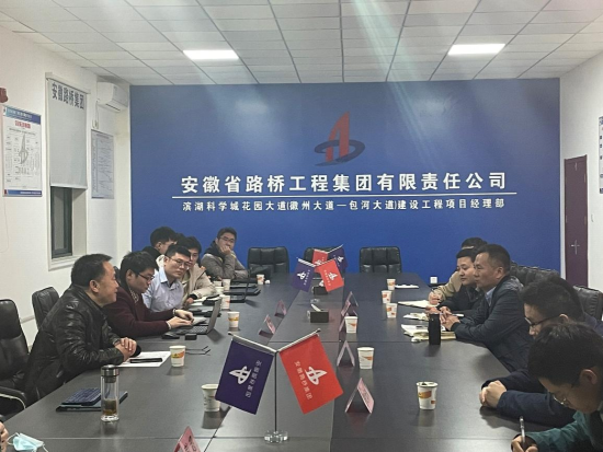 授牌仪式结束后,双方到花园大道项目部进行现场考察,了解工程的进展情况以及工程中出现的问题,并对问题的解决方案进行探讨。现场考察结束后,十大买球官方网站老师张伟丽、彭超、吕加贺、曾聪以及四位研究生在花园大道项目部对前期合作的科研课题进行阶段性汇报,并与安徽省路桥集团的项目负责人对相关问题进行了热烈的讨论。与会人员还围绕如何做实做好基地建设工作、联合培养研究生、科研攻关等内容进行了研讨,一致表示将不忘初心,继续加强校企合作,把科研成果应用在祖国大地上,培养出满足企业需求的人才。