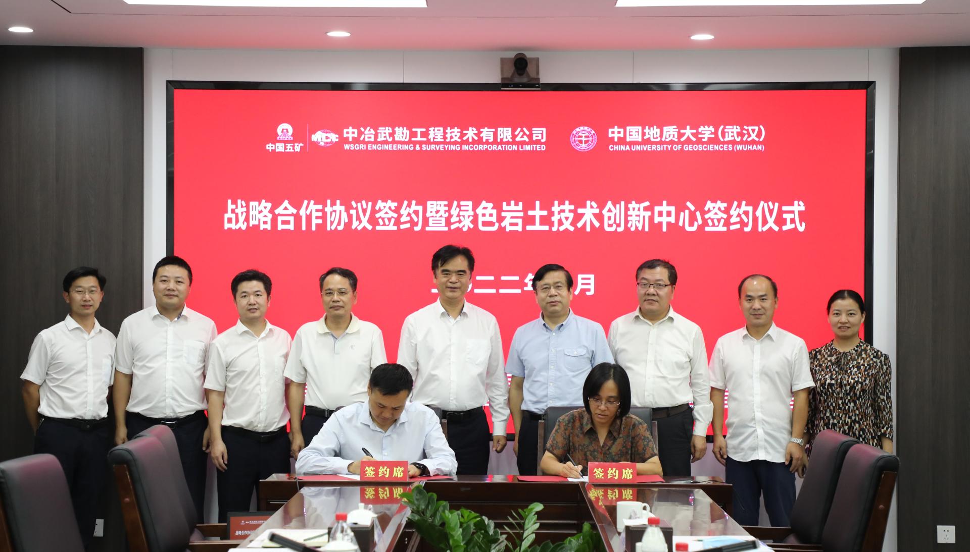 9月29日,十大买球官方网站与中冶武勘工程技术有限公司签署战略合作框架协议,并联合成立“绿色岩土技术创新中心”,深入推进产学研发展。十大买球官方网站党委书记李红丽和中冶武勘副总经理、总工程师江永建代表双方签署战略合作协议。中国地质大学(武汉)党委副书记唐辉明,中冶武勘党委书记、董事长臧中海见证签约并共同为“绿色岩土技术创新中心”揭牌。双方将把科教资源优势和工程技术成果转化优势紧密结合,在产学研用协同创新、人才培养等方面进行全方位的合作。