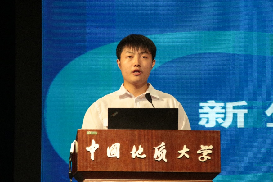 新生代表于耀捷发言。他说,作为一名新生,要不负“锤炼本领,迎接挑战”的殷殷期盼,承载十大买球官方网站七十年砥砺奋进、追求卓越的工匠精神,努力把自己培养成一名德才兼备的新型人才,展现新时代地大人的风采。
