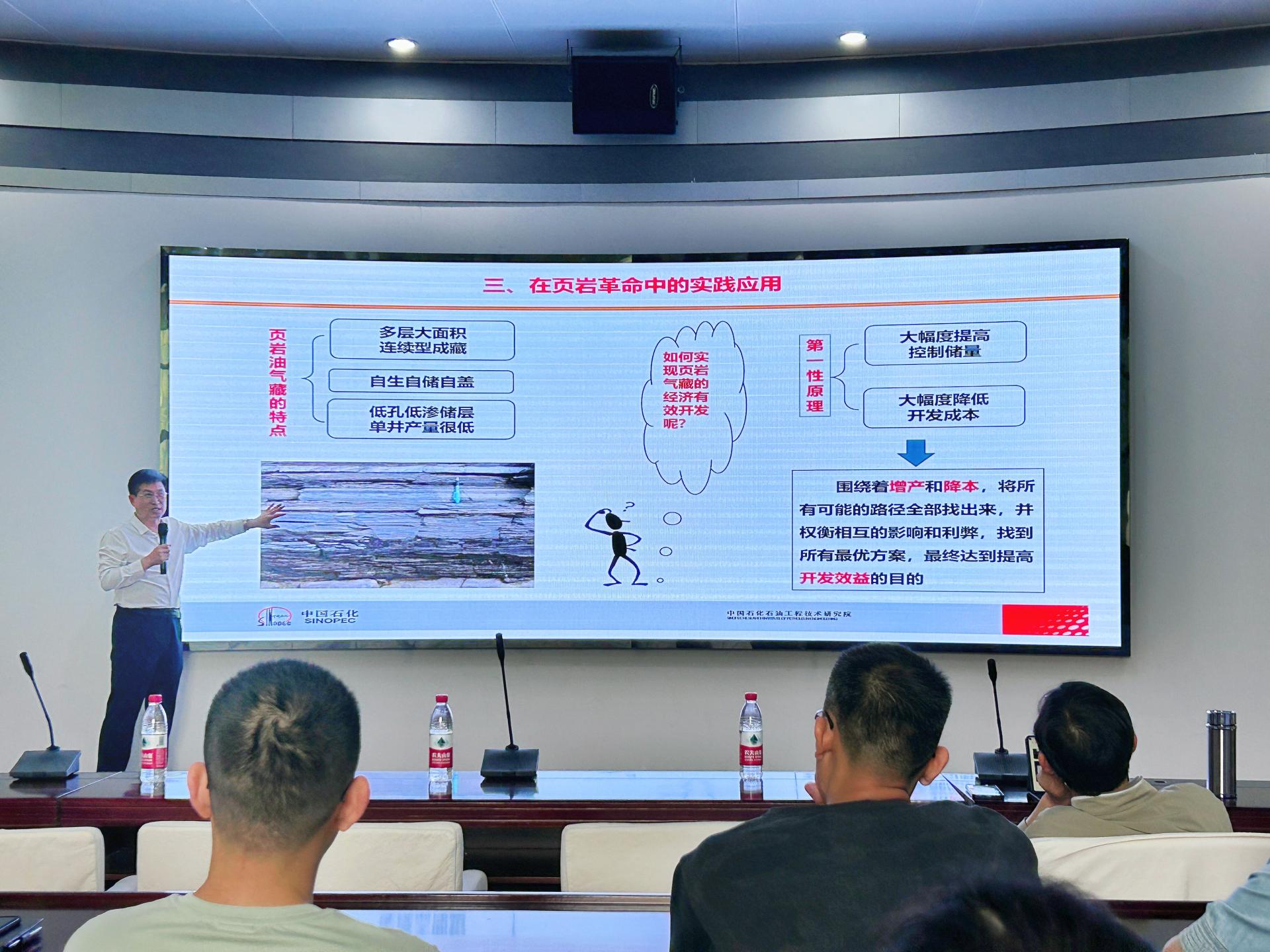 (通讯员 赵雯婕)2023年5月5日上午,应十大买球官方网站和地球深部钻探与深地资源开发国际联合研究中心段隆臣教授的邀请,中石化石油工程技术研究院首席专家、中国地质大学(武汉)客座教授张金成教授级高级工程师来院作学术报告。报告会由段隆臣教授主持,张浠教授、宁伏龙教授、潘秉锁教授、高辉副教授、谭松成副教授、田红副教授、黄满副教授及50余名师生参加了此次报告会。