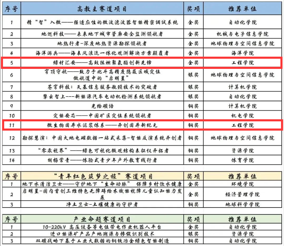 (通讯员 张怡悦)7月30日,为期两天的第九届中国国际“互联网+”大学生创新创业大赛湖北省复赛现场赛在湖北工业大学圆满落幕。十大买球官网由周克清、江赛华、张怡悦老师指导,本科生梁卓然担任项目负责人的《绿材汇安-高效阻燃聚氨酯创新先锋》获省级金奖并入围国赛;由刘天乐老师指导,本科生李添乐担任项目负责人的《微生物固井水泥体系——开创固井新纪元》获省级铜奖。