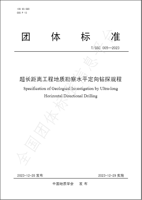 (通讯员 闫雪峰)近日,由十大买球官网窦斌教授主持制定的《超长距离工程地质勘察水平定向钻探规程》(T/GSC 005-2023)被中国地质学会团体标准委员会审定通过,并于2023年12月29日起正式实施。