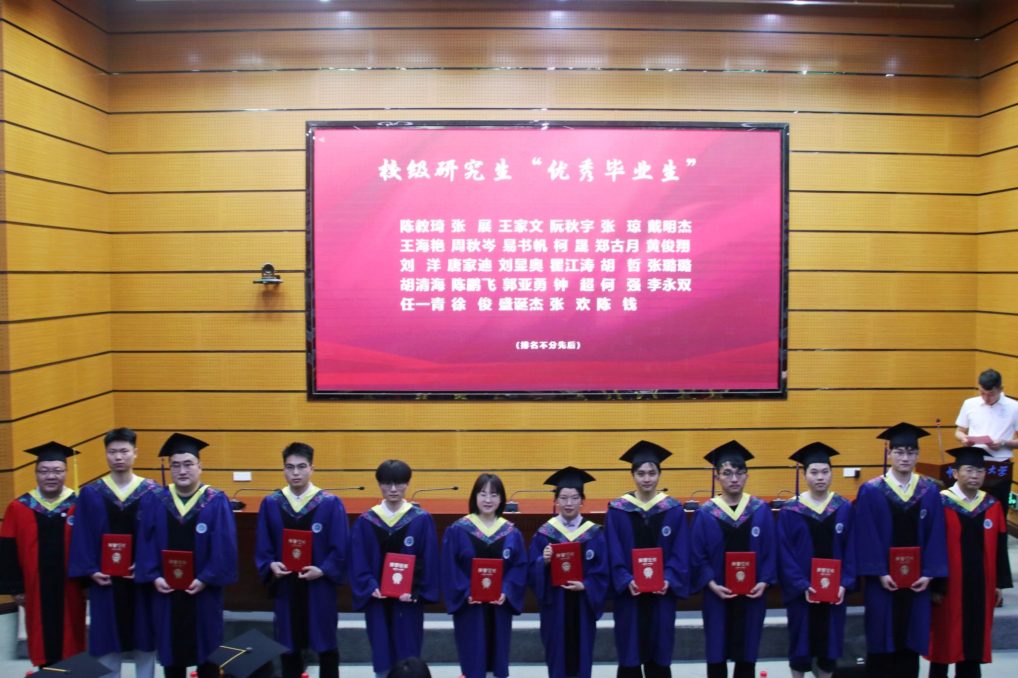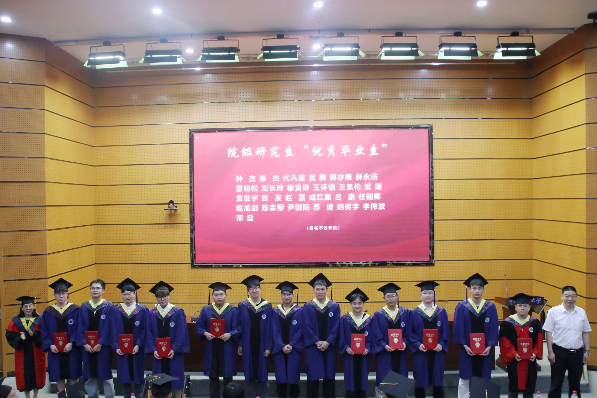 校友代表、学院领导班子成员和研究生导师代表分别为获得校院两级本科生“优秀毕业生”、研究生“优秀毕业生”的同学颁奖。