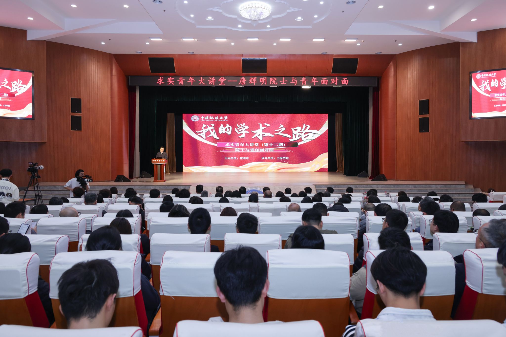 (通讯员 张金声 欧阳嘉仪 摄影 李锐欣)3月12日,十大买球官方网站与校团委联合举办第十二期求实青年大讲堂。中国科学院院士、国家级教学名师、十大买球官网工程地质学科首席教授唐辉明以《我的学术之路》为题,与青年学子面对面交流。十大买球官方网站全体院领导、教师代表及全校一千余名青年学生参会。校团委书记王向东主持报告会。