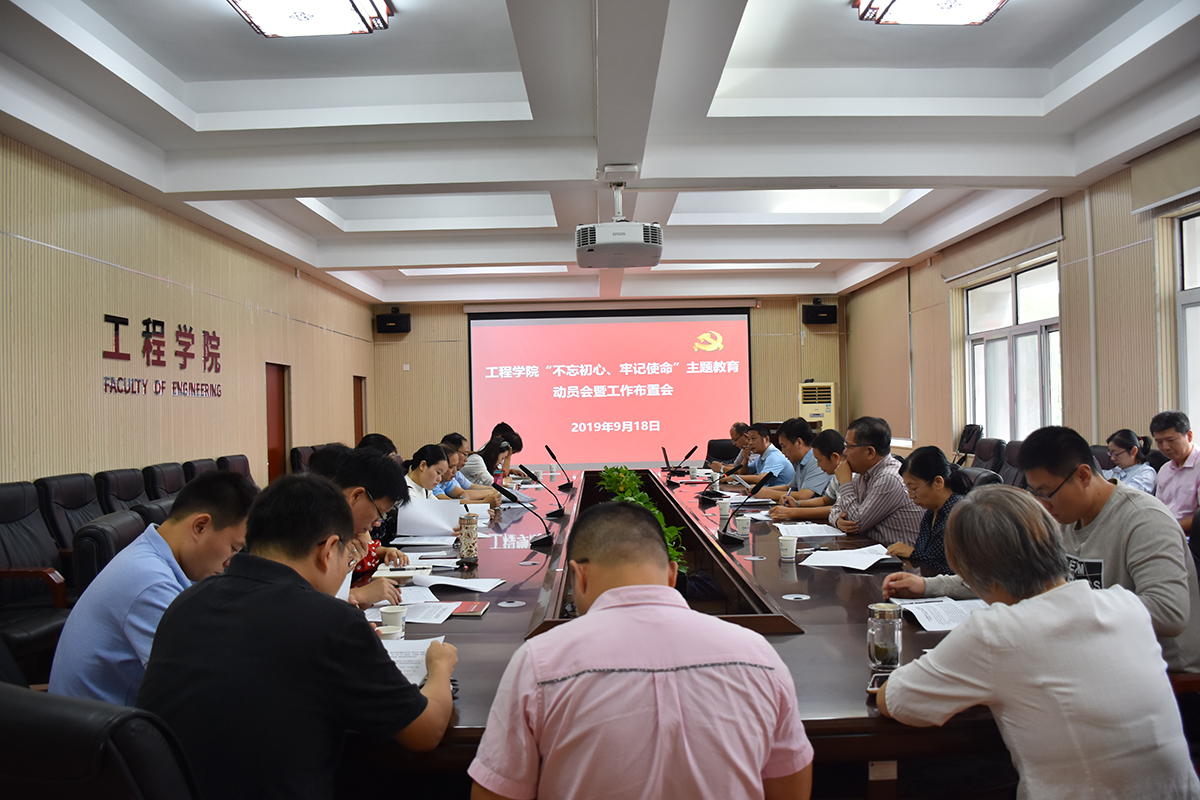 9月18日,十大买球官方网站“不忘初心、牢记使命”主题教育动员会暨工作布置会在工程楼315会议室召开。学院党委书记、主题教育领导小组组长陈飞作动员讲话,学校主题教育指导组组长、教务处副处长张建和,学院领导班子成员、党委委员、各系(室、中心)支部书记、主任、学生辅导员、三级单位党员代表参会。