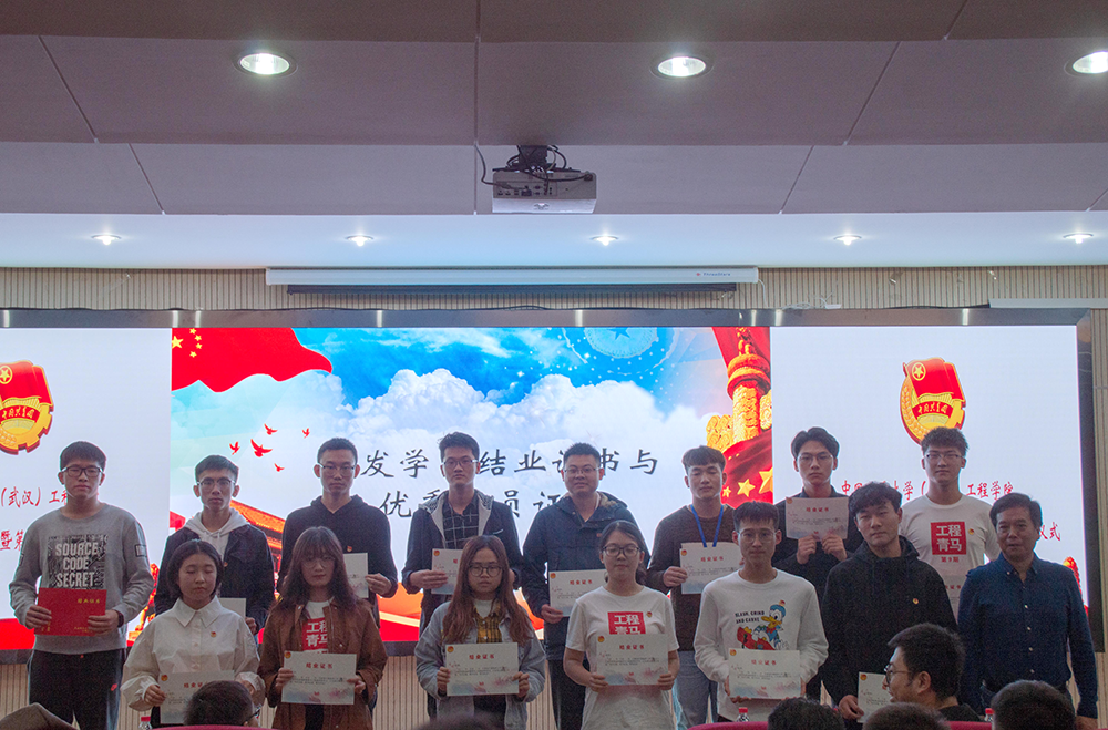 (通讯员:杨晶颖,陈豆,杨昊,孙乐愚)2019年10月25日晚7点,为了引导青年学生进一步坚定跟党走的初心,切实办好团校和加强大学生骨干思想政治培训工作,探索人才培养的“试验区”,开启多元人才培养模式。十大买球官方网站在工程楼418举行第一届筑魂班结业仪式暨第二届筑魂班开班仪式。院党委书记陈飞,院党委副书记江广长,校团委副书记谭文伦,院团委副书记文新,马克思主义学院郭关玉,院学工办全体辅导员,院筑魂班班主任王一洋,院第一届筑魂班以及第二届筑魂班全体学员,2019级本科生全体团支书以及2019级研究生全体党支部书记参加了此次会议。