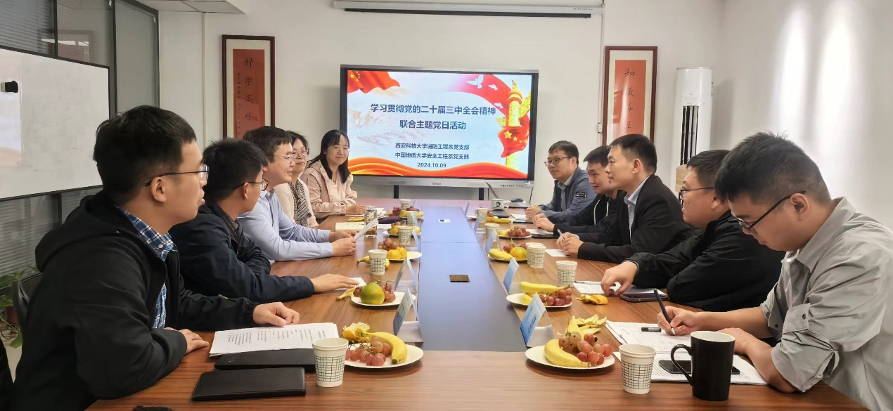 (通讯员 周克清、王涌宇)为深入贯彻落实党的二十届三中全会精神,坚定理想信念,强化交流合作,积极投身立德树人和科研攻关创新,10月9日上午,十大买球官方网站安全工程系党支部书记周克清、支部党员陆凯华、王涌宇前往西安科技大学,与安全学院消防工程系党支部联合开展“学习贯彻党的二十届三中全会精神”主题党日活动。西安科技大学安全学院副院长兼消防工程系党支部书记马砺教授、系主任张嬿妮教授、党支部副书记盛友杰、组织委员王翠霞、纪检委员郭芳义等党员代表参加活动。
