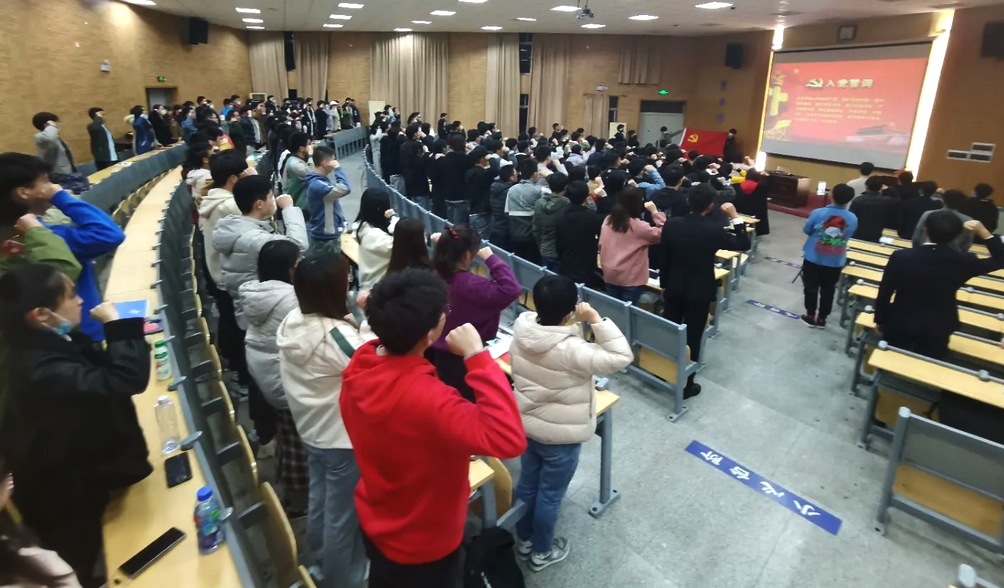 2020年学院共发展预备党员167人,十大买球官方网站分党校秘书王焱同志带领同志们进行集体宣誓。