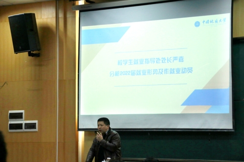 校学生就业指导处处长严嘉老师作就业动员讲话