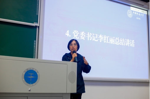 李红丽总结讲话。她指出,学风建设是高校教育教学工作的核心内容,是学院推进人才培养质量提升的应有之举,本次推进“优良学风示范班”创建工作,正是落实学校“十六字”人才培养方针和学院“三观三型”人才培养目标的具体举措。全体同学要做到:一是提高思想认识,凝聚共建合力。班级是开展学风建设的基本单元和重要阵地,良好的班级学风是促进同学成才的基本保障,每一位同学都是受益者。各班级要高度重视“优良学风示范班”的创建工作,提高思想认识,并通过日常班会、主题团日等形式积极宣传,凝聚共识,形成合力。二是对照创建标准,认真贯彻执行。学风建设是一项系统工程,要凝聚班主任、助理班主任、辅导员等各方育人力量,扎实开展《中国地质大学(武汉)十大买球官方网站“优良学风示范班”创建评选办法》的学习,对标创建量化评估指标,结合班级自身情况,把创建目标定好、分步计划做好、务实举措想好、特色活动办好,推进学风建设走深走实。三是做好榜样示范,共创优良学风。班团委干部是班级的排头兵,要以身作则、率先垂范,积极担当优良学风的践行者。同时,班团委干部也要当好学风建设的组织者,将班团组织建设工作统一到优良学生示范班级建设工作当中,充分调动班级同学的积极性、主动性,明确分工、通力协作,共创优良学风。